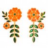 MATERIAL : Specially customised metal alloy with gold plating. This four flower drop earring is hand enamelled using the age old meenakari craft from jaipur. Leaf green and dual tones of orange enamel from jaipur are used. The chain and the fish hooks help the motifs to dangle in a beautiful manner.