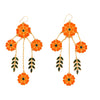 MATERIAL : Specially customised metal alloy with gold plating. This four flower drop earring is hand enamelled using the age old meenakari craft from jaipur. Leaf green and dual tones of orange enamel from jaipur are used. The chain and the fish hooks help the motifs to dangle in a beautiful manner.